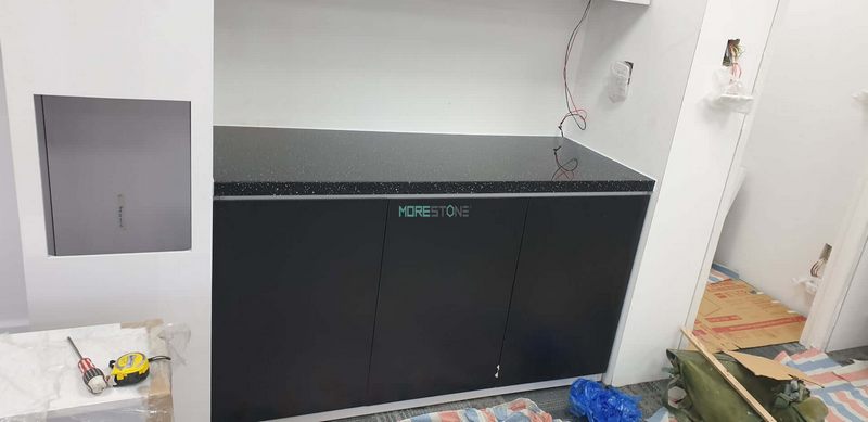 Mẫu thi công đá ốp bếp Himacs màu đen rất đẳng cấp phù hợp cho diện tích không gian bếp chung cư, nhà phố có diện tích hạn chế.